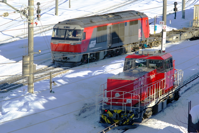 今回、傍から素人が見ている限りですが、DEに比べてパワー面で劣っているように見えましたし、耐寒装備という面でも備え付けのスノープロウの丈が短く、明らかに積雪に対して不足しているようでした。雪国では積雪時に排雪しながら入換するようなシュチュエーションもあり、そういった場合では定格以上のパワーも要求されます。量産車が登場する頃には耐寒強化使用などのバリエーションも作られているかもしれませんね。