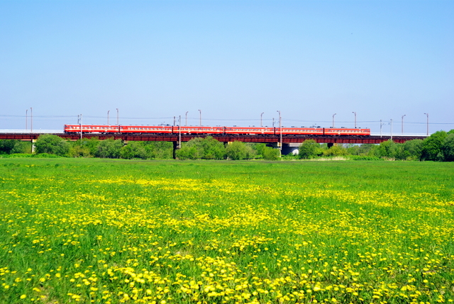 これまで、夕張川橋梁と河川敷のタンポポと絡めた一枚を撮りたいとは思っていましたが、ここは駅間距離の長い江別~豊幌間のちょうど中間地点で、徒歩族にとっては近場でありながら中々行けないポイントでした。今日は親父の車で連れて行ってもらうことが出来たので、思いのほか楽にたどり着くことができました。