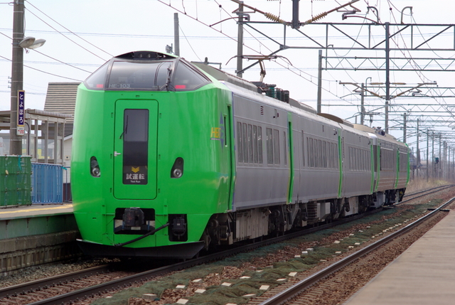 ネット上でその姿が公開されてから話題になっている785系青函増結用改造車の試運転がまもなくあるらしいとのことで、試運転ダイヤの時間にあわせて野幌駅で待ってみることにしました。