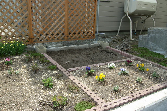 だいたい7割くらい出来上がりました、手前の区画は母が買ってきた花々がさっそく植えられました。奥の区画は部材が揃っておらず、まだ完成まで時間がかかりそうです。