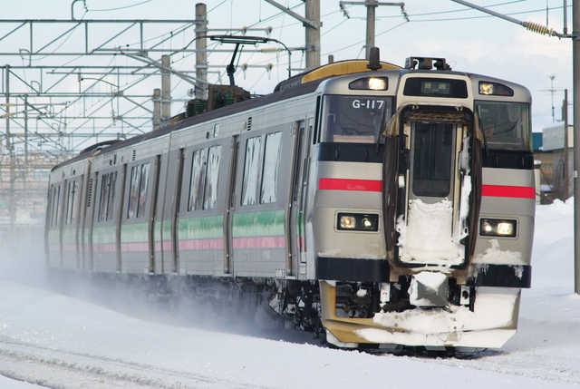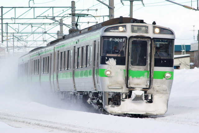 ここまでの話はあくまで噂と推測ですから、話半分程度で聞いてくださいね。いずれにしろ、711系も徐々に終焉に近づいていくことは確かなようです。今日、大麻駅で撮影した小樽発旭川行2149Mは午前中の札幌圏を堂々6連で駆け抜ける貴重な列車ですが、これとていつまで走ってくれるかわかりません。今回はようやく冬の711系をきちんと記録した1枚が撮れたので本当によかったです。これから先もそんなに多くは撮れないでしょうが、残したい構図がいくつかあるので、それらを一枚一枚しっかり切り取っていきたいと思います。また、小樽から旭川まではるばる4時間30分かけて走る2149Mをいつかは乗り通してみたいものです、もちろん弁当、おつまみも忘れずに(^^A)